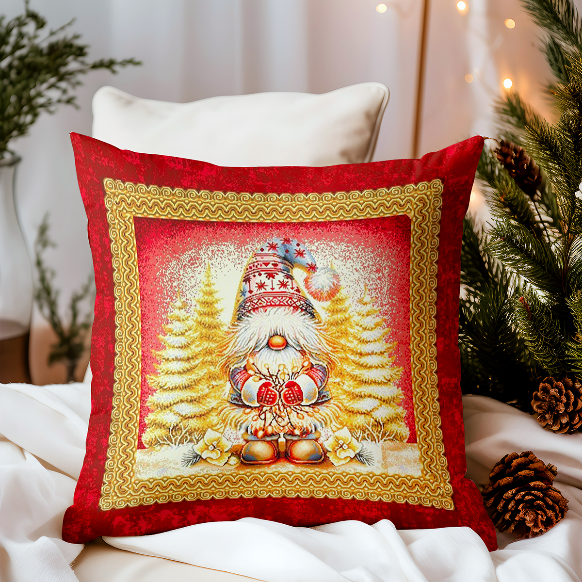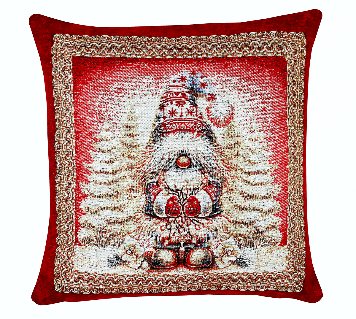 Úvod » VIANOCE » Luxusná vianočná gobelínová obliečka na vankúš s vianočným škriatkom a zlatou lurexovou niťou