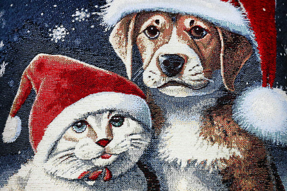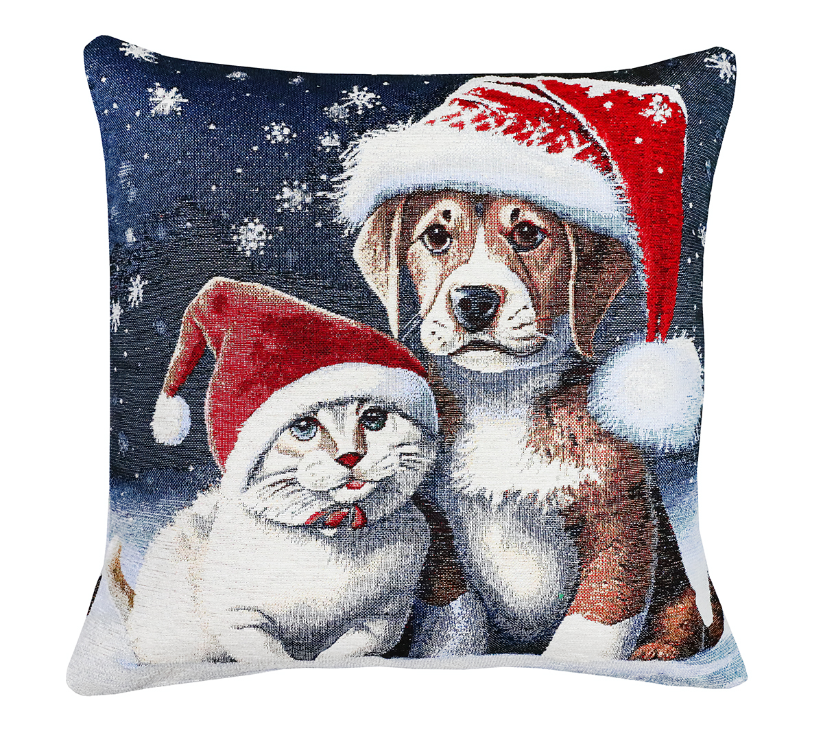 Úvod » VIANOCE » Vianočná gobelínová obliečka na vankúš Chenille so psíkom a mačičkou s lurexom