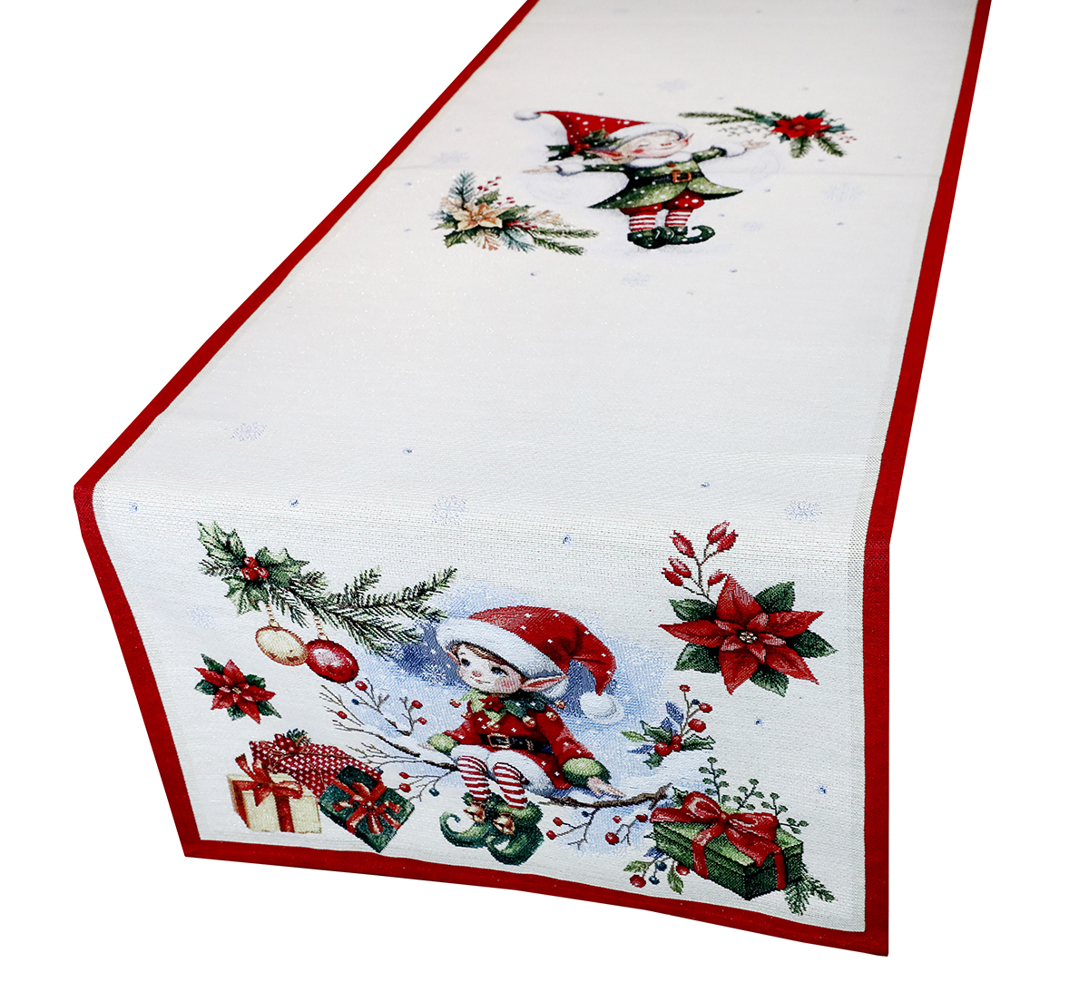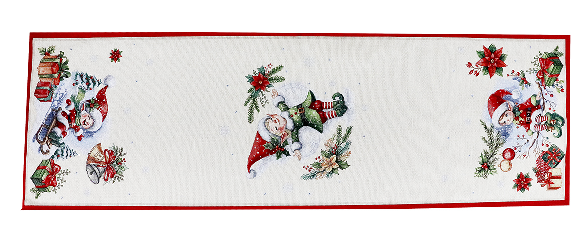 Úvod » VIANOCE » Vianočný gobelínový behúň na stôl so škriatkami – pretkávaný lurexom